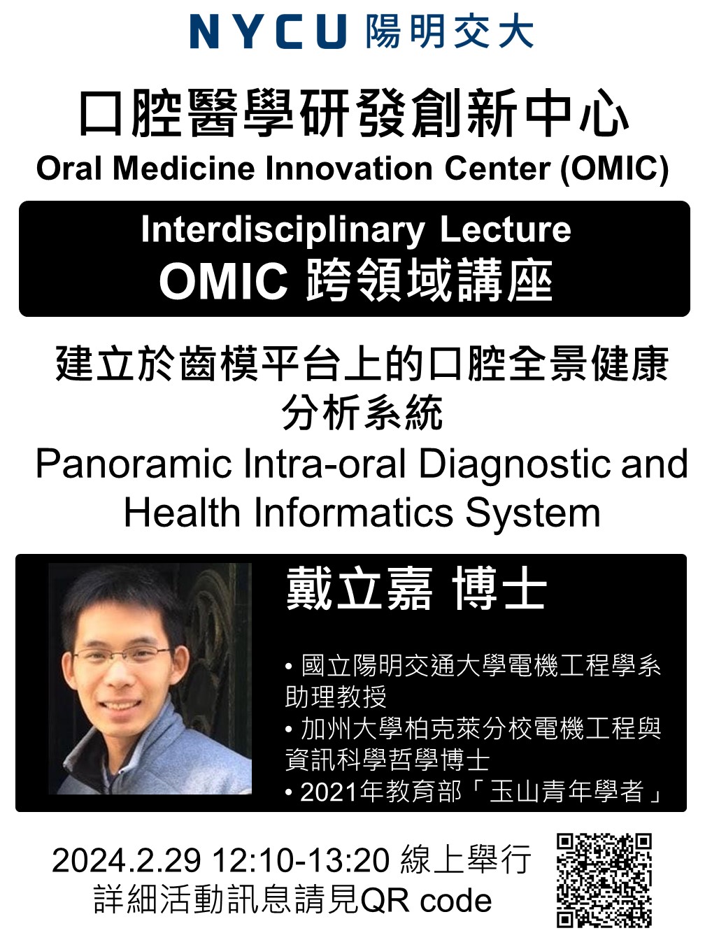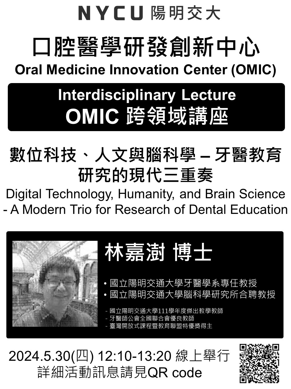 2024年第二場跨領域講座,將邀請國立陽明交通大學牙醫學系林嘉澍博士